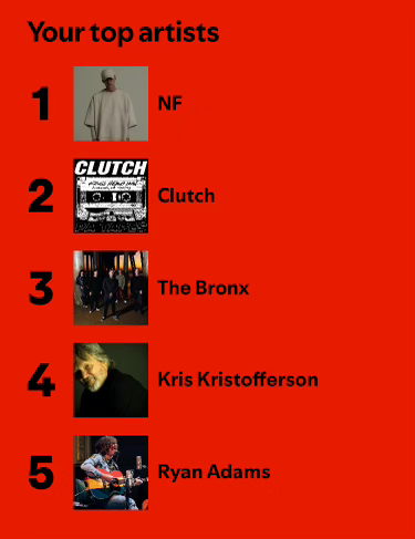 NF – As I said earlier, I listened to a ton of NF this year. His music is incredible, and I’m not shocked at all to see him in the top spot.